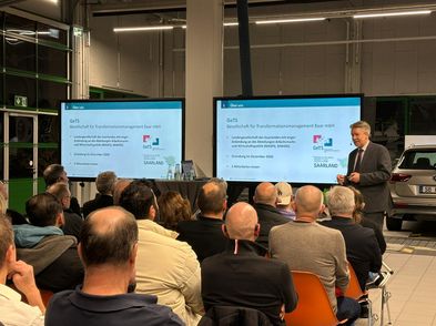 Den Auftakt bildete die Vorstellung der Gesellschaft für Transformationsmanagement Saar (GeTS) durch Geschäftsführer Alexander Hauck und Prokurist Henning Romund. Die GeTS verfolgt das Ziel, von Arbeitslosigkeit bedrohte Fachkräfte aus der Industrie mit Handwerksbetrieben zu verbinden, die als neue Arbeitgeber infrage kommen.