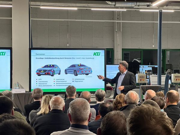 Im Hauptvortrag beleuchtete Helge Kiebach, Geschäftsführer des Kraftfahrzeugtechnischen Instituts (KTI), die Praxis rund um Fahrerassistenzsysteme und automatisierte Fahrfunktionen. Besonders eindrucksvoll zeigte er, wie komplex die Sensorik moderner Fahrzeuge ist und welche Auswirkungen selbst kleine Veränderungen – etwa durch Reparaturen, Lackierungen oder falsche Kalibrierung – auf die Sicherheit haben können. Anhand konkreter Beispiele erklärte er, warum präzise Kalibrierverfahren, die Einhaltung von OEM-Vorgaben und qualifiziertes Personal entscheidend sind, damit Assistenzsysteme zuverlässig funktionieren.